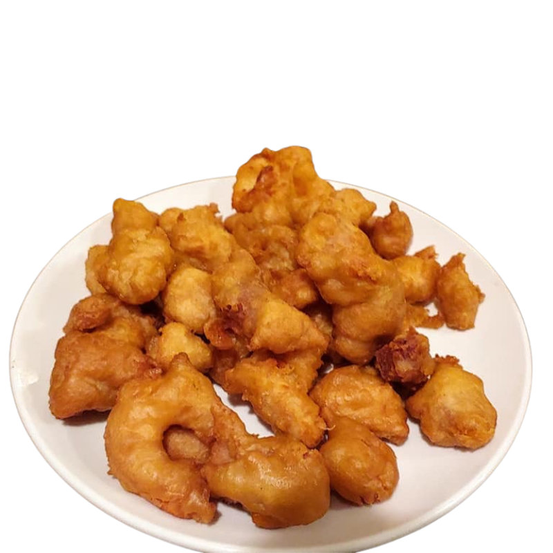 Tempura battered served with our sweet & sour sauce made from sweet citrus fruits. Come with fried rice, steamed rice, or plain lo mein.