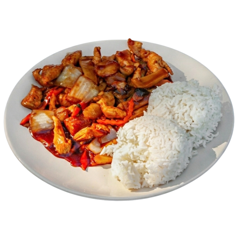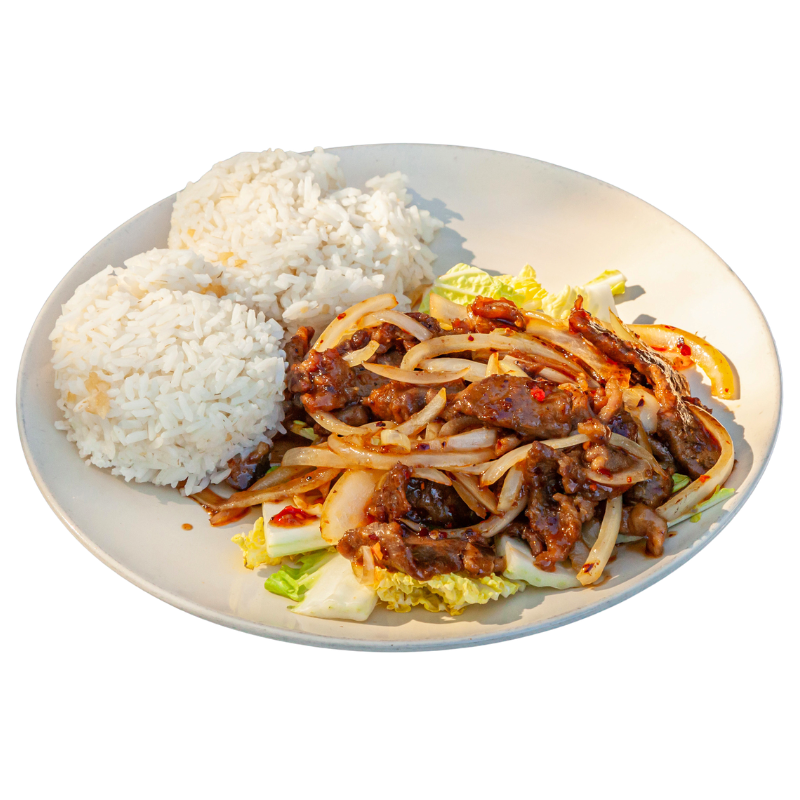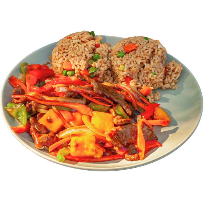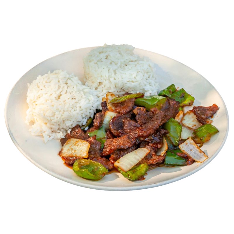 Your choice of protein is served with green bell peppers, yellow onions, and black pepper, all stir-fried together in our homemade brown sauce.