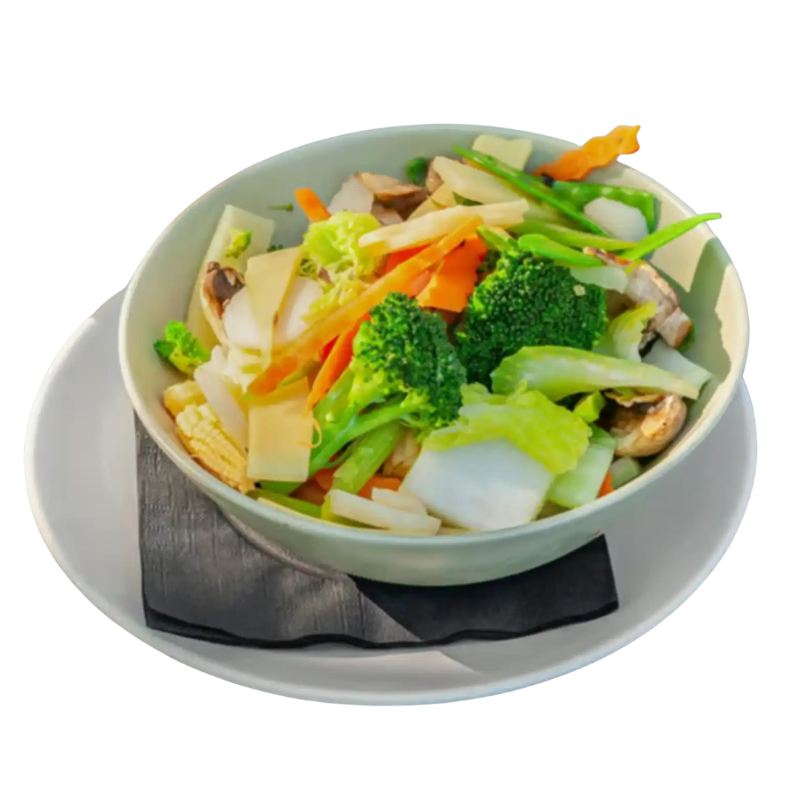 Mix of baby corn, bamboo shoots, mushrooms, carrots, water chestnuts, onion, and celery all stir-fried in our special teriyaki sauce.