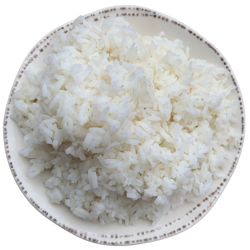 Plain fluffy steamed rice.